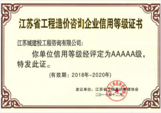 江蘇省工程造價(jià)咨詢企業(yè)信用等級(jí)證書(shū)