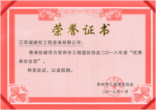 常州市工程造價協(xié)會二O一八年度“優(yōu)秀單位會員