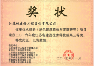 二O一六年度江蘇省建設(shè)優(yōu)秀科技成果三等獎(jiǎng)